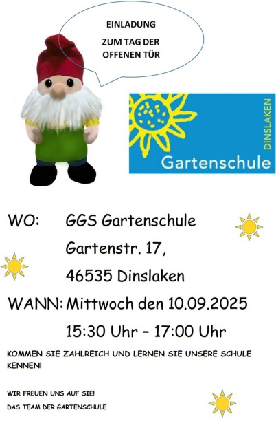 Ab dem 15. Mai 2025 begrüßen wir regelmäßig die zukünftigen Schülerinnen und Schüler unserer neuen ersten Klassen: unsere GARTENZWERGE!