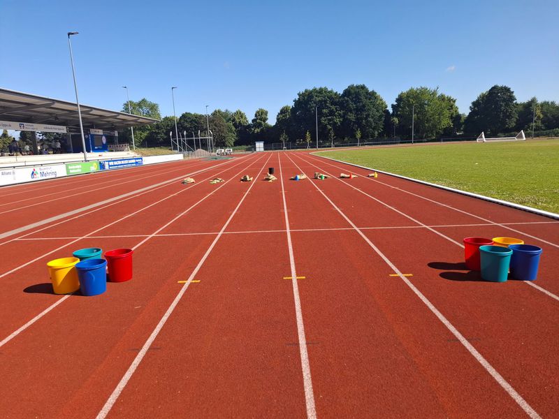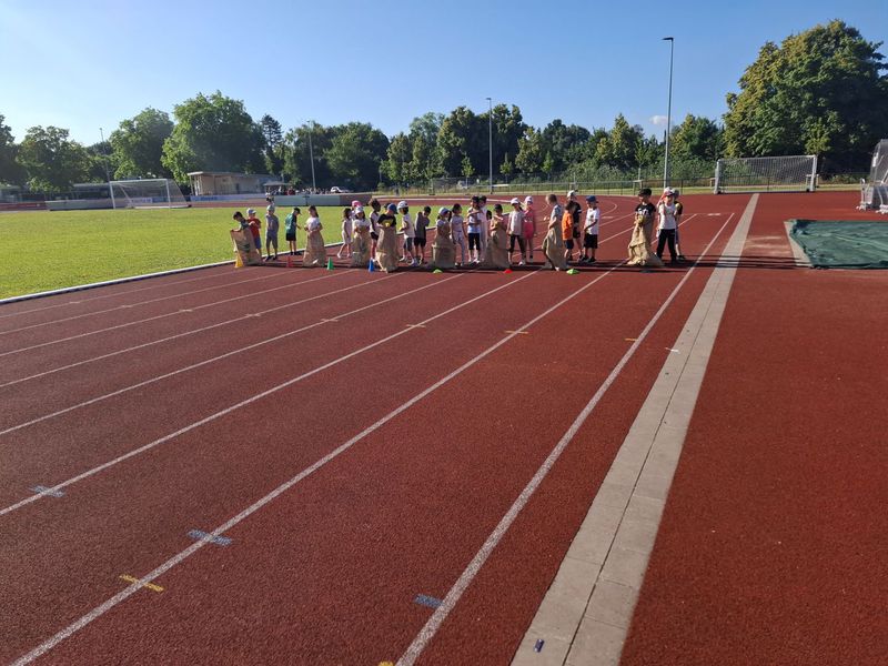 Bei strahlendem Sonnenschein wanderte die gesamte Gartenschule zur Bezirkssportanlage. Die Kinder rannten um die Wette beim Memorylauf, Beim Puzzlelauf durch ein "Lavafeld" brauchten sie Geschick sowohl beim überqueren der "Lava", als auch beim Puzzlen. Der Wassertransport erforderte gutes Teamwork, und beim Sackhüpfen mussten die Kinder noch ihre Zielgenauigkeit beim Werfen beweisen. Zahlreiche Eltern feurten ihre Kinder lautstark an und trugen zu einer friedlichen, tollen Atmosphäre bei.
